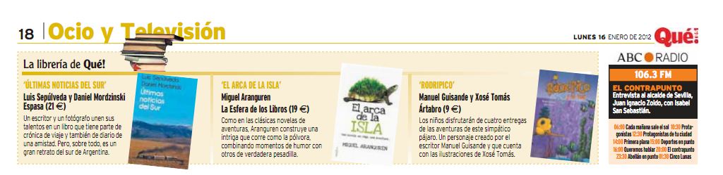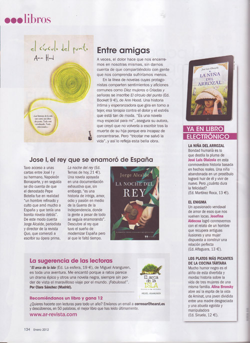 2. <Me he leído “El arca de la isla” en dos días..... ¡¡Así no hay quien haga frente a la crisis!!... Se lo paso a mis amigas a partir de hoy. Me ha encantado (y eso que yo soy fan, muy fan de “La hija del ministro”, novela con la que aún lloro>>. M.J. Atienda de Amores (Sevilla).